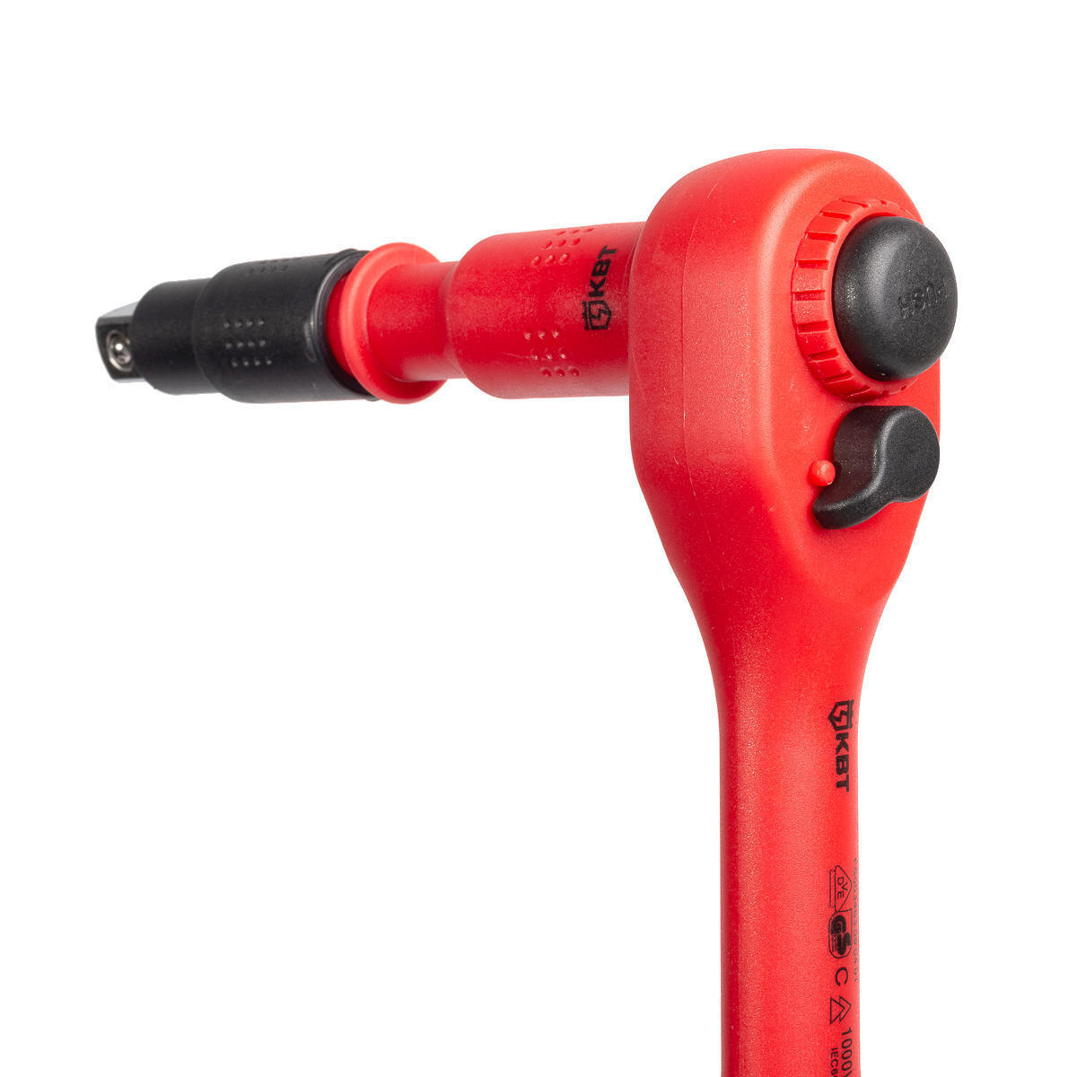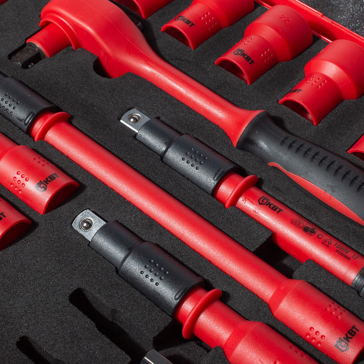 Набор диэлектрического инструмента 1/2" НИИ-05 КВТ 60468 серии ПРОФИ представляет собой комплект торцевых шестигранных головок с трещоткой, разработанных для работы под напряжением до 1000 В. Этот инструмент соответствует стандарту VDE и оснащен присоединительным квадратом 1/2 дюйма.