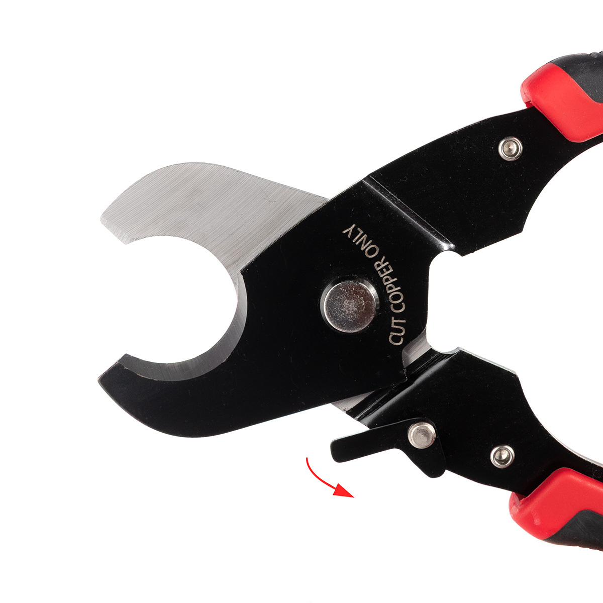 Для безопасности предусмотрен блокиратор рукояток, а возвратная пружина облегчает работу.