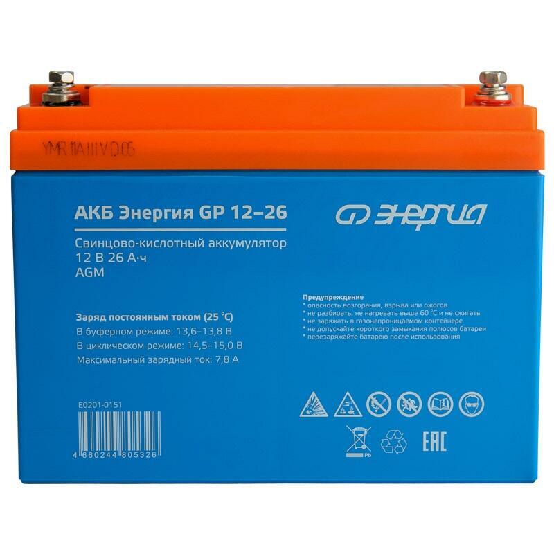 Аккумулятор для ИБП Энергия GP 12-26 s А/ч купить в интернет-магазине урал лайн. Чтобы оформить заказ, свяжитесь с нами по телефону +7 (343) 233-75-56 или оставьте заявку на нашем сайте. Мы будем рады помочь вам подобрать нужную емкость АКБ, учитывая вашу мощность и время автономной работы. Доставка АКБ Энергия GP 12-26 с гарантией по России.