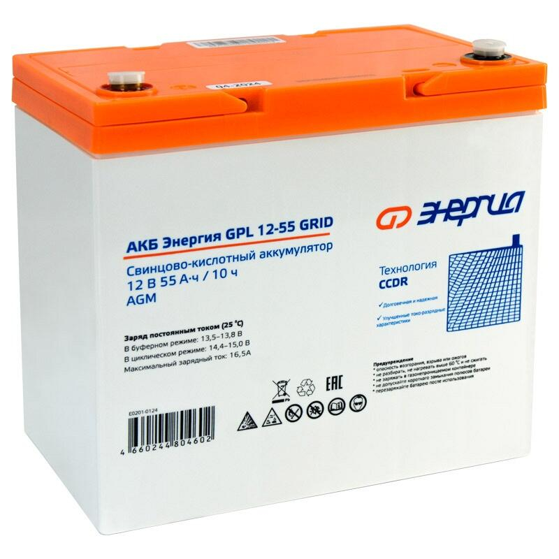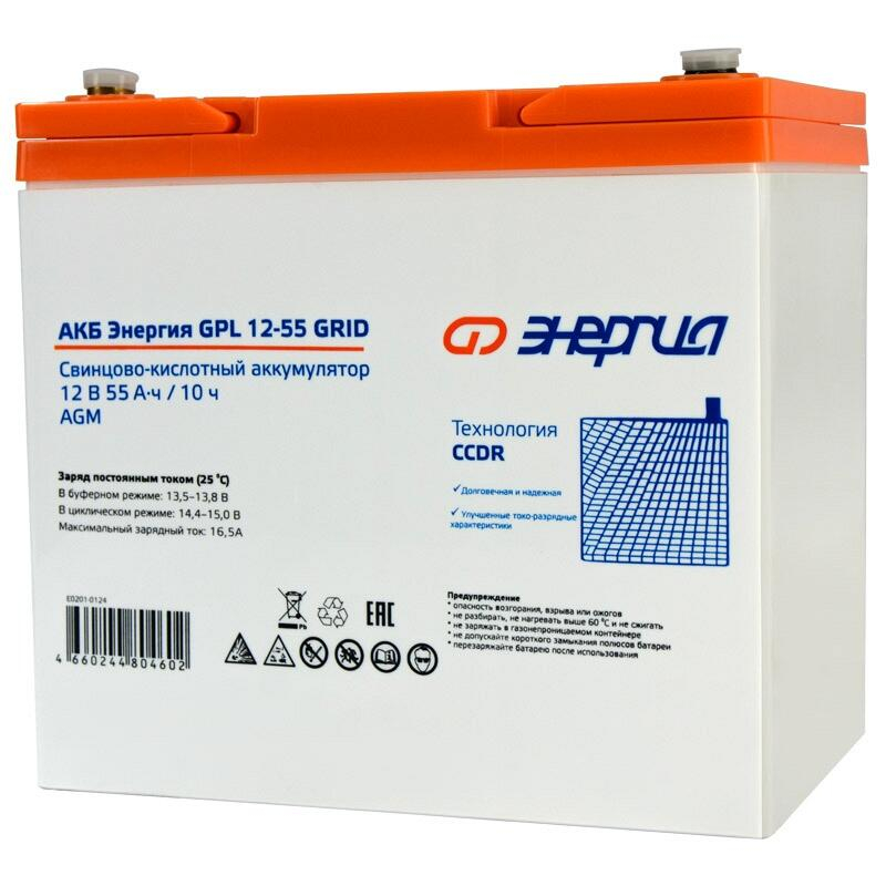 Аккумулятор для ИБП Энергия GPL 12-55 Grid Е0201-0124 купить в интернет-магазине урал лайн. Чтобы оформить заказ, свяжитесь с нами по телефону +7 (343) 233-75-56 или оставьте заявку на нашем сайте. Мы будем рады помочь вам подобрать нужную емкость АКБ, учитывая вашу мощность и время автономной работы. Доставка АКБ Энергия GPL 12-55 Grid с гарантией по России.