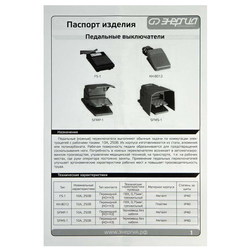 Переключатель педальный FS-1 Энергия